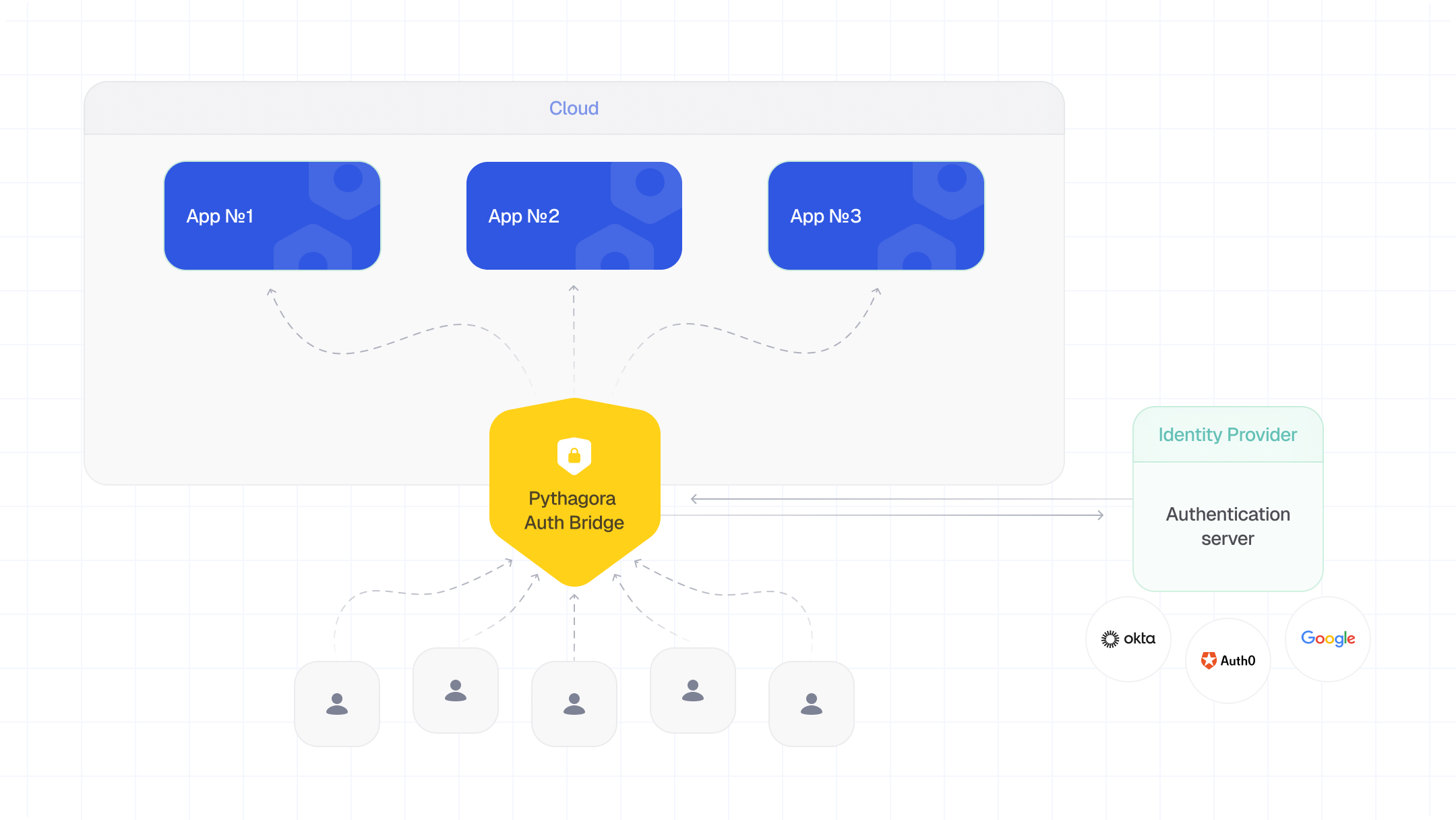 Verification happens at the gate: invited users are approved via Auth Bridge or SSO, while attackers are stopped instantly.